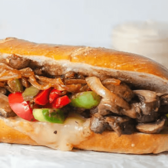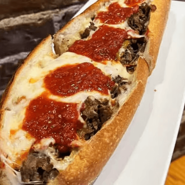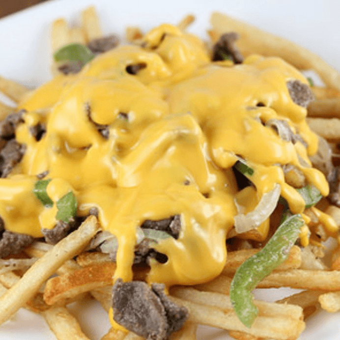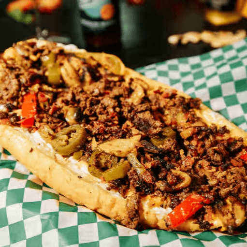 Steak, mushroom, onions, garlic, jalapenos, goat cheese, horseradish sauce.