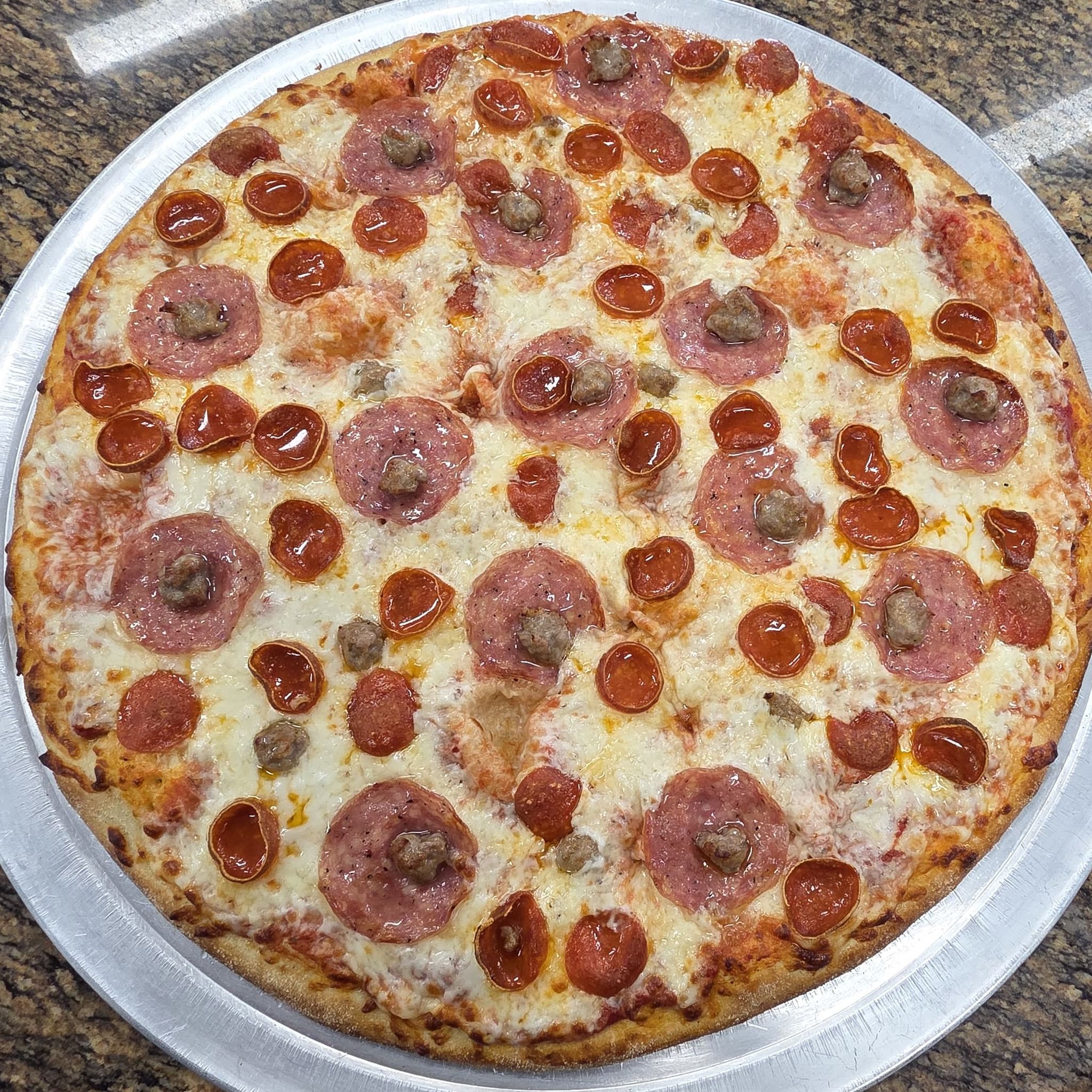 Salami, pepperoni, Italian sausage, ricotta, and fresh basil.